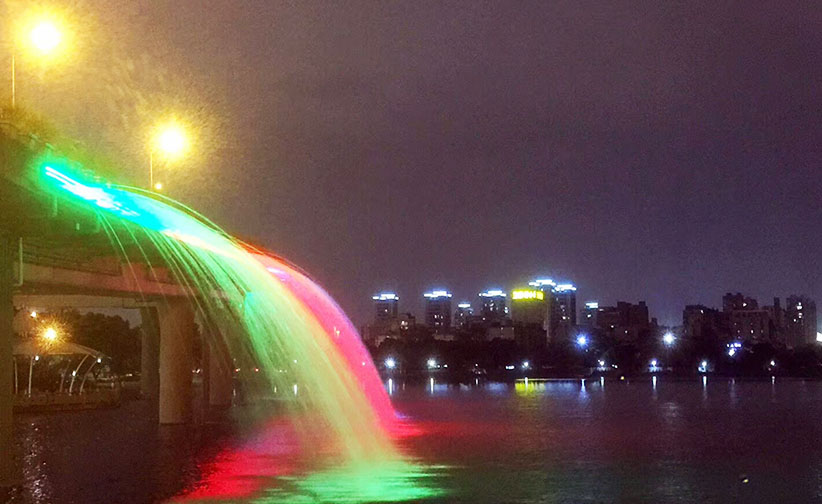 寧波日湖公園東起江北大慶南路延伸段,南至通途路,西界湖濱路,北接環城北路,總面積46公頃,水域面積約為15.5公頃,是一個開放型的城市公園,也是目前城區最大的公園。為了提升公園的形象,增加公園的觀賞價值,寧波市政府,對公園做了系列改造,其中之一就是從穿湖而過的慶豐橋上面人造瀑布水景,現工程已竣工,是寧波市內排首的景觀工程。